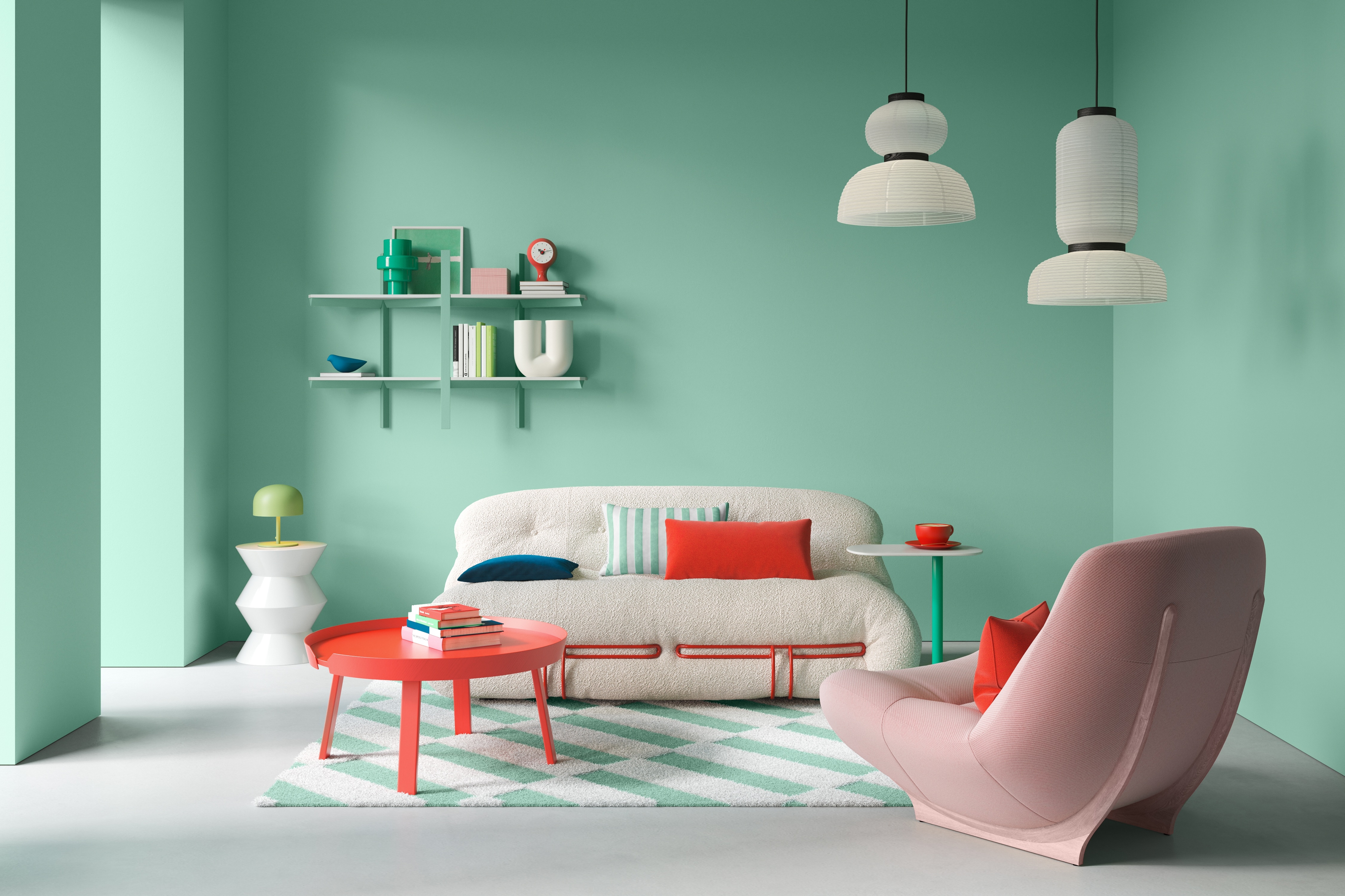 Lichen das Mintgr, das Frische und Gelassenheit vereint. Ideal f Rme, die eine entspannte und moderne Atmosphe suchen.