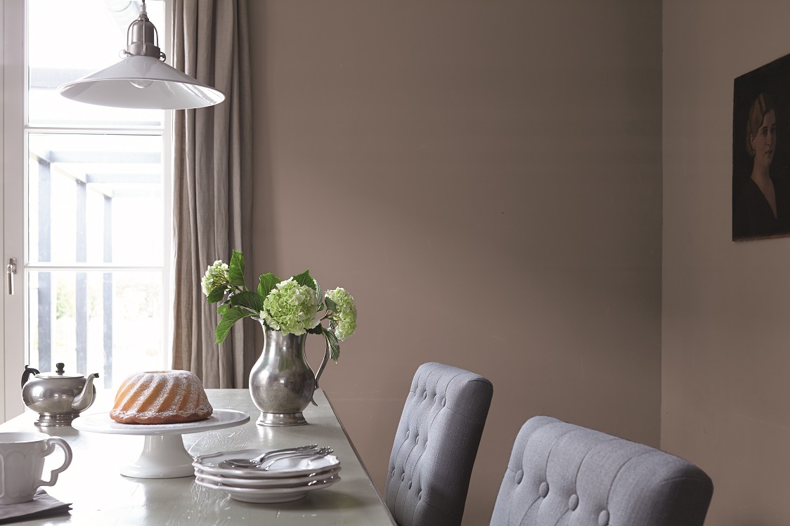 Den warmen, ruhigen Charakter dieser Raumfarbe unterstützen Sie ideal mit Naturfarben und Cremetönen, mit Leinen, Webstoffen oder naturfarbenem Holz. Sanftes Pastellrosé greift den gedeckten Charakter der Farbe auf und bringt einen Hauch Frische hinzu, während Silber ihre stilvolle Präsenz unterstützt.